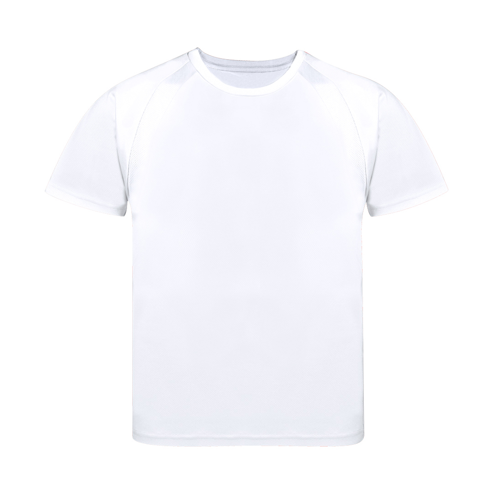 Kid technical T-shirt in 100% polyester breathable 135g/m2 material. With raglan sleeves, round neck and with front and side bands in breathable micro-perforated fabric. Available in sizes 4-5, 6-8, 10-12.