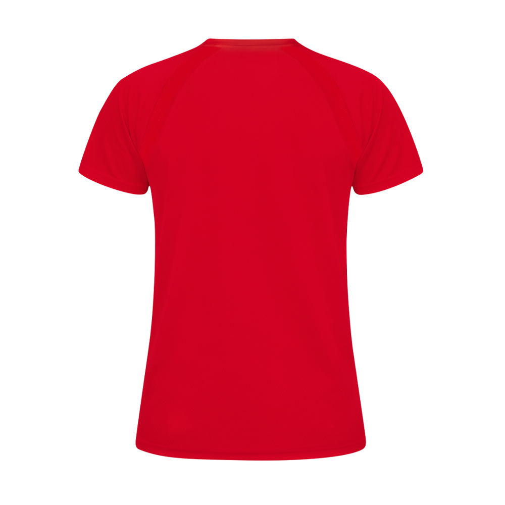 Kid technical T-shirt in 100% polyester breathable 135g/m2 material. With raglan sleeves, round neck and with front and side bands in breathable micro-perforated fabric. Available in sizes 4-5, 6-8, 10-12.
