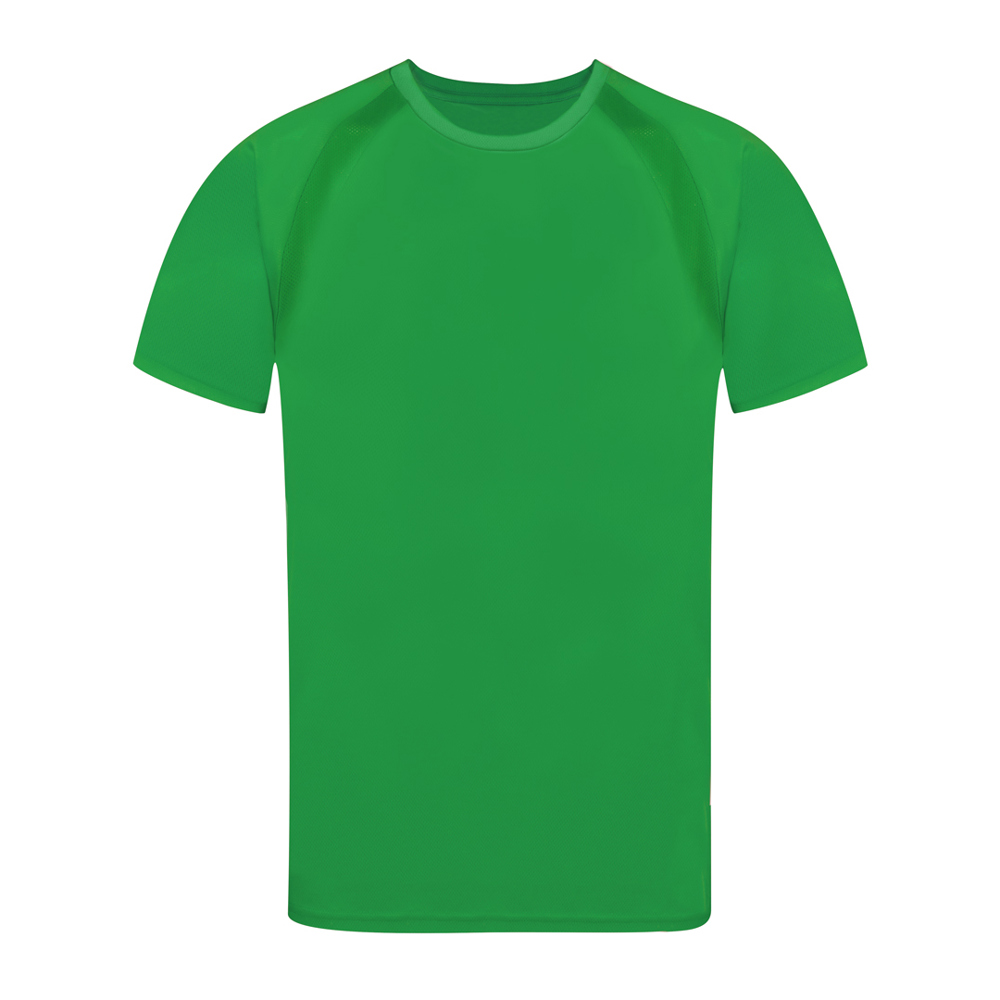 Adult technical T-shirt in 100% breathable polyester material 135g/m2. With raglan sleeves, round neck, and front-side bands in breathable, micro-perforated fabric. Available in sizes S, M, L, XL, XXL.