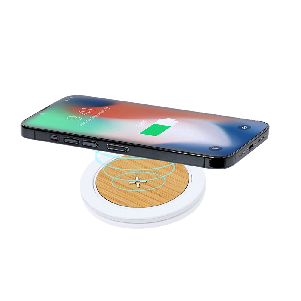 Multifunction lamp made of bamboo. With integrated 15W wireless charger and 27 LEDs in a foldable ring with holder function. Compatible with wireless charging mobile devices and with Type C charger cable included. Presented in an attractive kraft design box. Instruction manual available in English and Spanish.Materials such as bamboo encourage the use of natural raw materials, reducing pollutant emissions. It comes from a highly resistant and versatile plant with rapid growth and regeneration, making of it an excellent alternative to traditional wood.Manufactured according to RoHS standards and in compliance with the following safety requirements: Overheating protection system. Over-charge protection system. Blocking system to prevent short circuits.