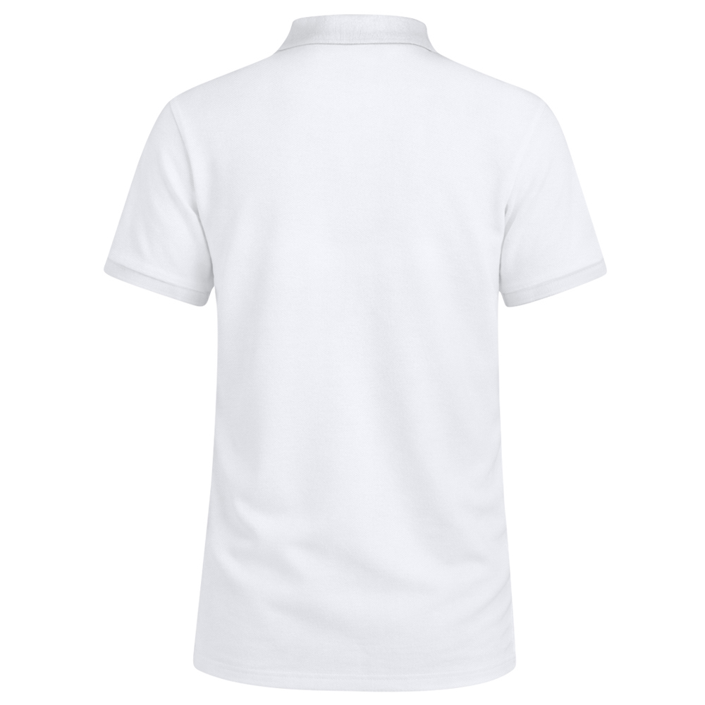 Adult pique polo shirt in white. In 100% cotton material 220g/m2. With two matching button fastenings and side openings at the hem. Easily removable label. Sizes S, M, L, XL, XXL, 3XL.