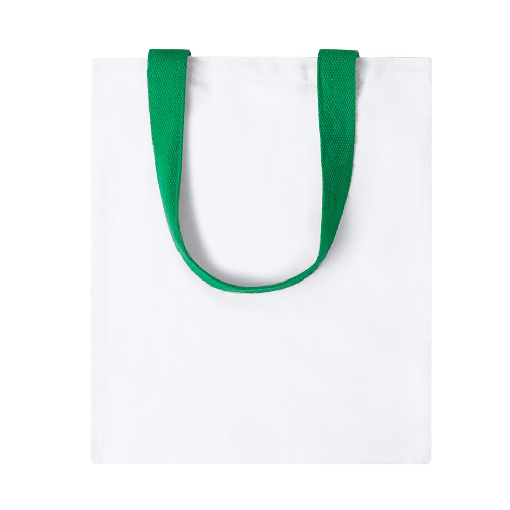 Canvas bag 230g/m2. In white colour, with resistant stitched finish and reinforced handles in different colours, 60cm long.