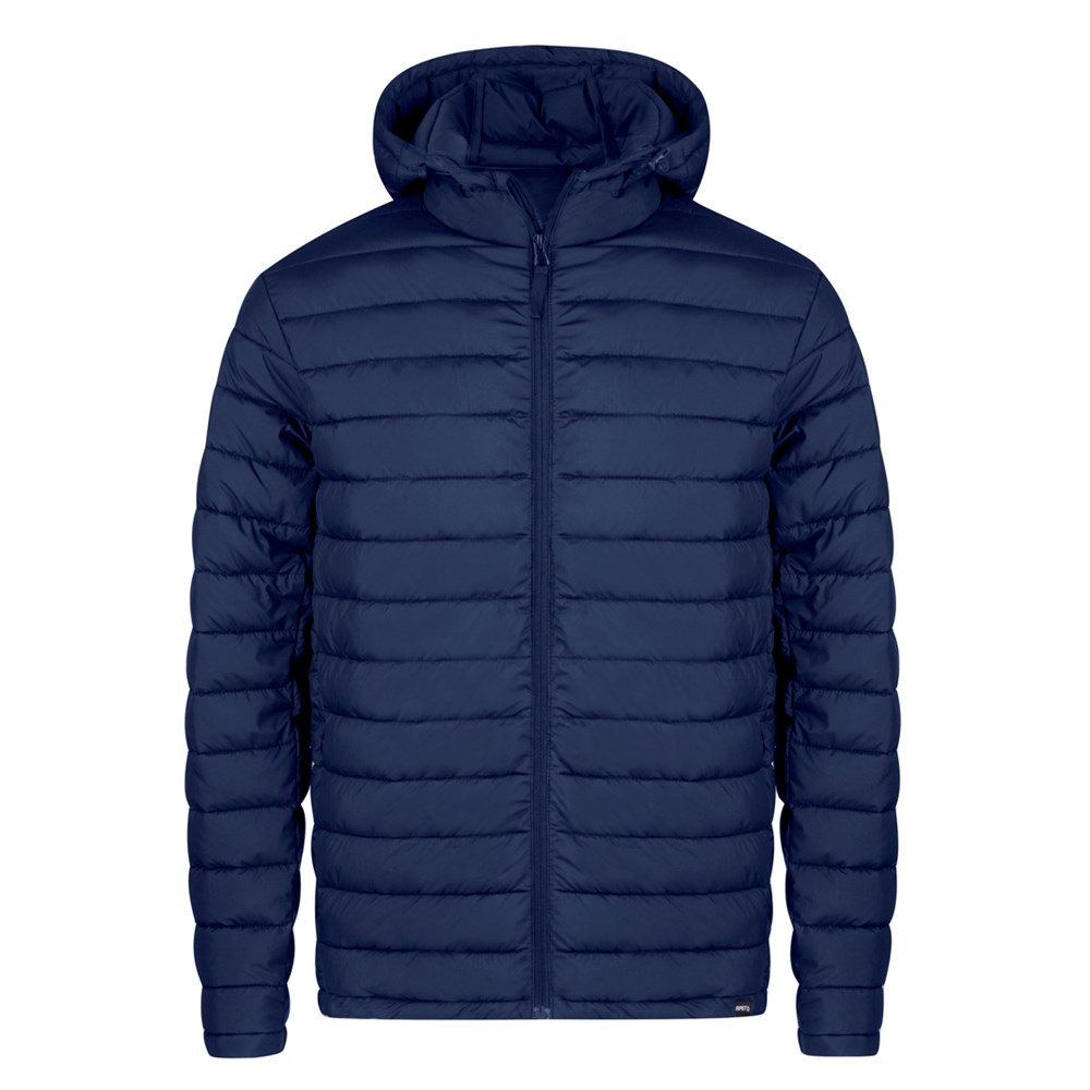 Unisex jacket in warm and soft 100% RPET material, with adjustable hood with elastic straps. In extra light feather effect material, water resistant and windproof. With inner padding, zip on collar with placket and strap on puller, as well as large side pockets with zip. Including a practical carry pouch with adjustable drawstring and RPET logo label. Available in a wide range of colours and sizes XS, S, M, L, XL, XXL.RPET material is made from recycled plastic, thus promoting the reuse of plastic waste and helping the sustainability of the planet.