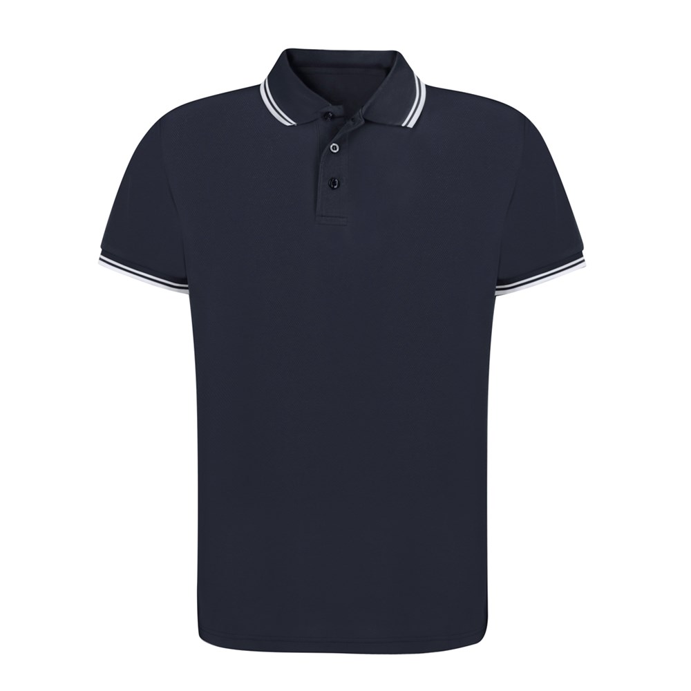 Breathable piqué polo shirt in soft 100% polyester 180g/m2 material. With three matching button fastening and side openings at the hem. Available in a wide range of colours, with contrasting details on collar and sleeves. Available in sizes XS, S, M, L, XL, XXL.
