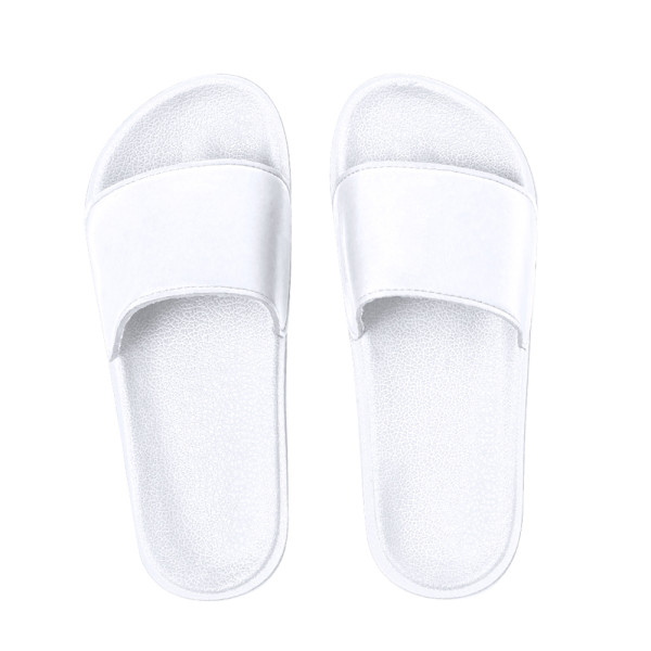 Pair of flip flops made of EVA and PU. Sole made of durable EVA for high durability and PVC ergonomic strap in matching color. Available in a variety of vibrant colours to suit any style. Sizes 36-37; 38-39; 40-41; 42-43; and 44-45. Each pair presented in a recycled bag.