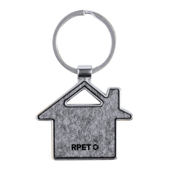 Keyring made in a combination of metal base and RPET felt sides. Available in circular design; in rectangular design with rounded corners; and in house and car shapes. With large branding area and RPET logo at the front. Presented in an individual recycled paper bag.RPET felt is the result of the combination of the recycling processes of plastic materials along with the millenary technique of felt manufacturing, resulting in an eco-trend material that, in addition to being of recycled origin, also becomes recyclable.