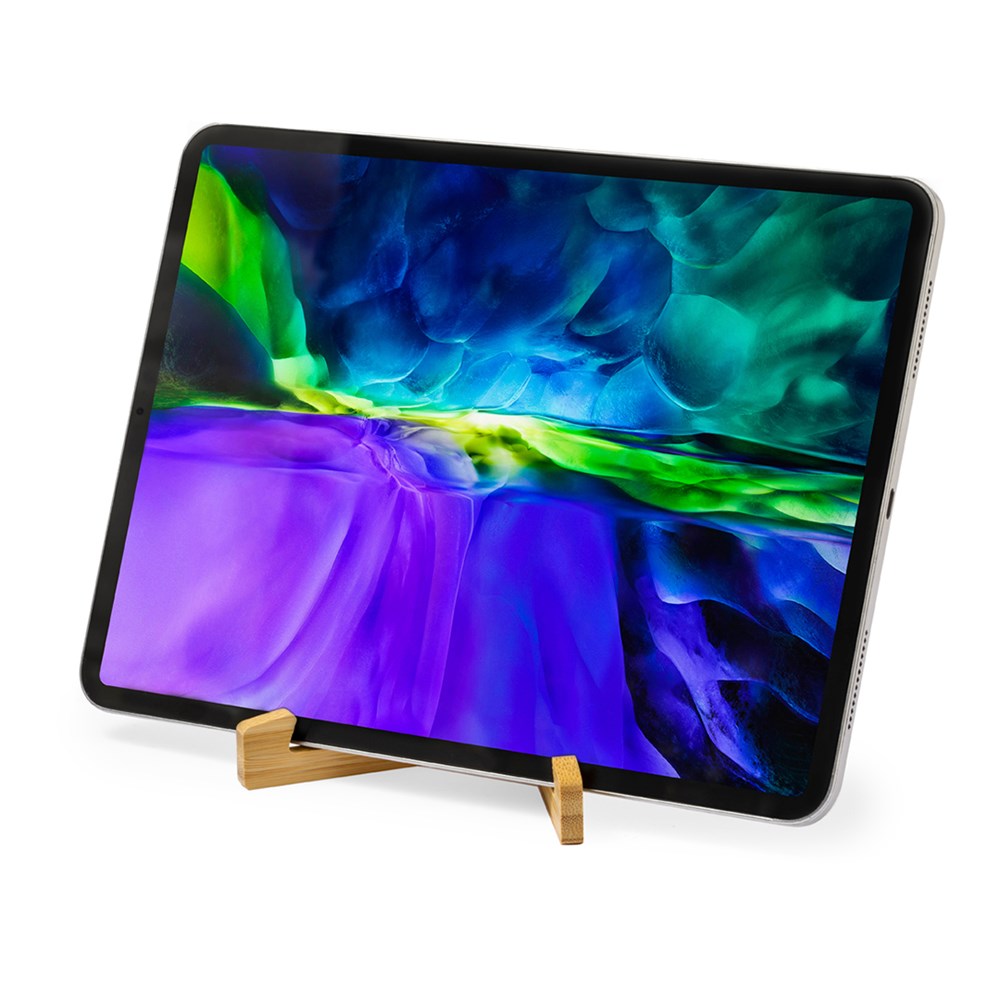 Foldable mobile device holder made of resistant bamboo. With adjustable feet and presented individually in a recycled paper bag.Materials such as bamboo encourage the use of natural raw materials, reducing pollutant emissions. It comes from a highly resistant and versatile plant with rapid growth and regeneration, making of it an excellent alternative to traditional wood.