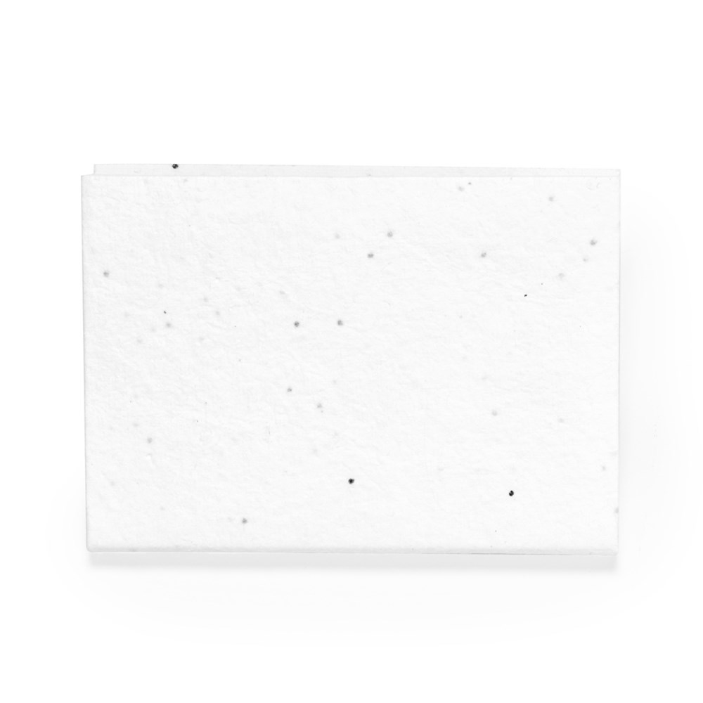 Notepad with covers made of seed paper. inside with 25 medium sticky notes and 125 mini sticky notes in a variety of colours. The cover includes petunia seeds, making it plantable paper at the end of its lifespan. Including planting instructions on the back cover and presented in an individual recycled paper bag.