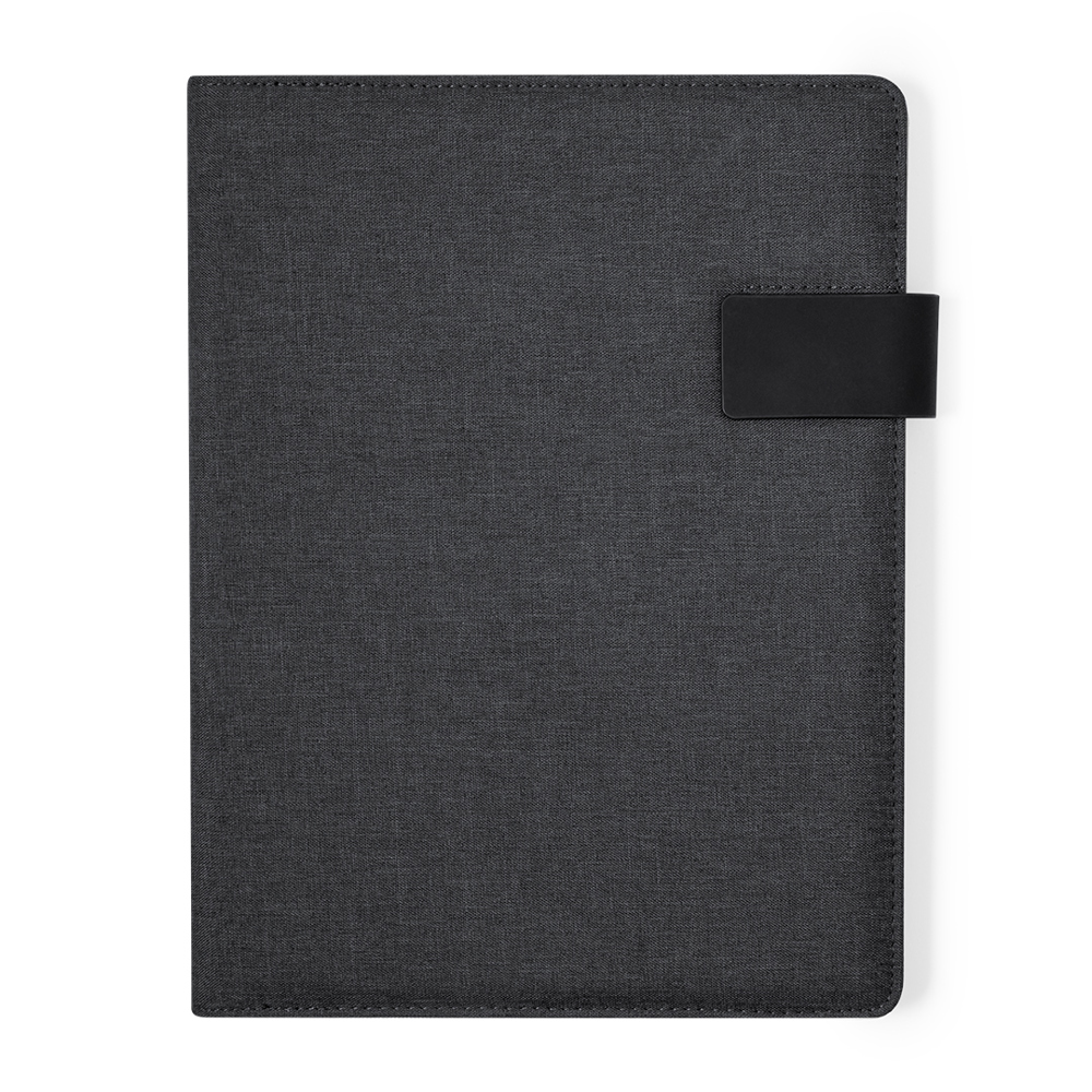 Practical folder made of RPET 600D. With an efficient inside design that includes compartments for 4 cards, 3 elastic pockets for mobile devices, and a wide space for sheets of paper. This organiser also features a practical pen holder and a notepad with 20 pages with single strip design. It can be kept securely closed thanks to its magnetic flap. Available in stylish colours and presented individually in a Recycled bag.RPET material is made from recycled plastic, thus promoting the reuse of plastic waste and helping the sustainability of the planet.