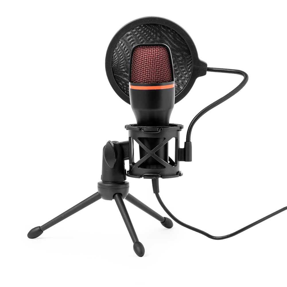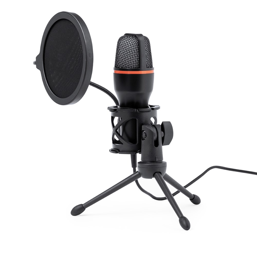 Condenser microphone with high audio quality, ideal for live broadcasts, video calls or recording podcasts among many other uses. With noise reduction system and anti-pop filter to prevent unwanted pops and/or hissing when producing sounds such as t, p or s. Backlit by multicolour LEDs and with easy plug and play connection system via USB cable, compatible with PC and other devices. Including an adjustable tripod to position it anywhere, as well as 360º rotation, and vertical adjustment. Presented individually in a kraft design box, with instruction manual in English and Spanish.