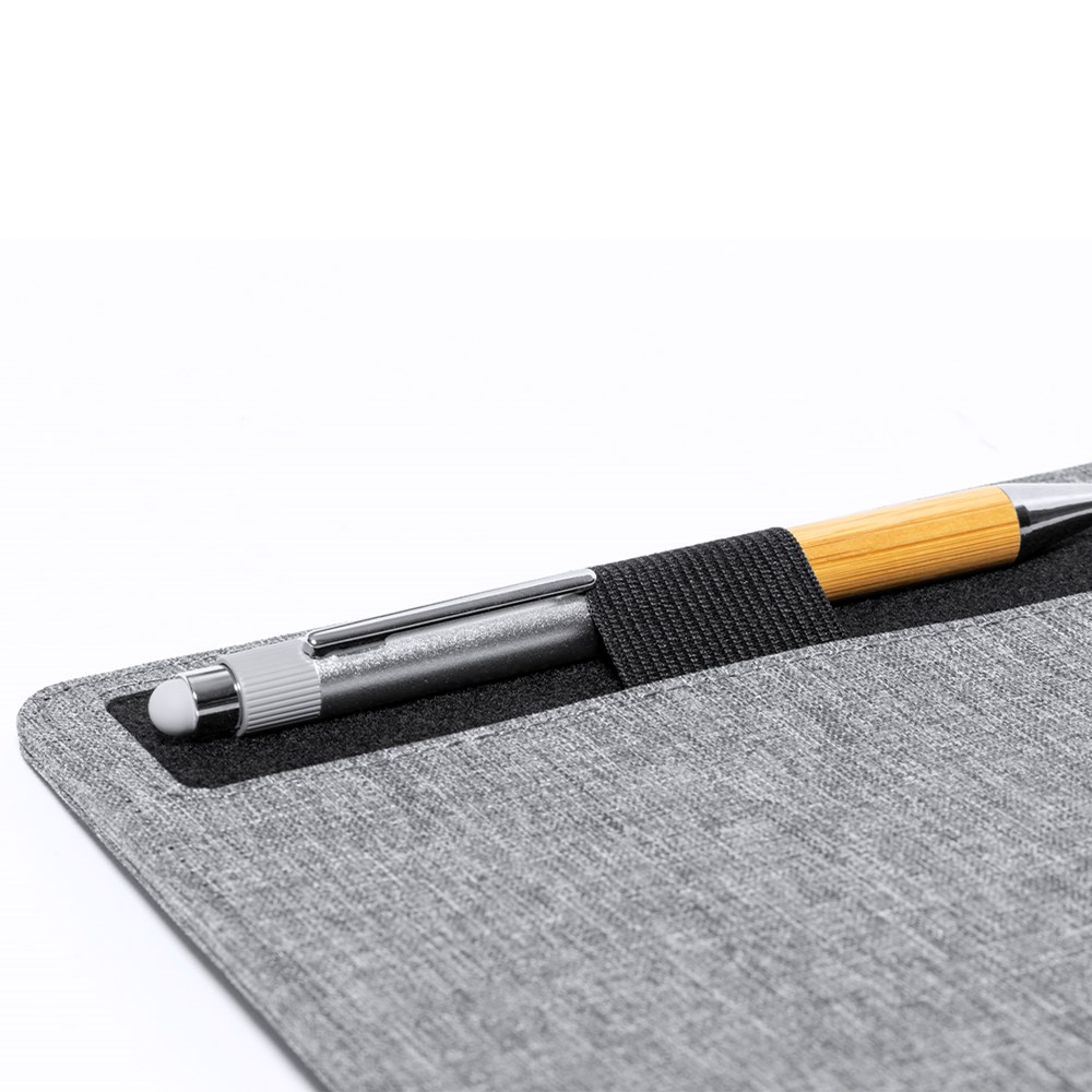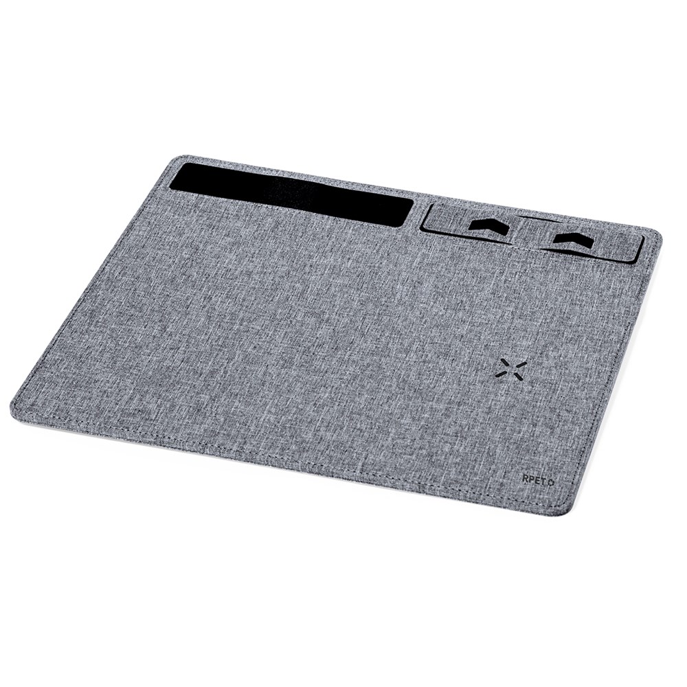 Stylish and functional mouse pad made of soft RPET polyester. With Type C input - black Type C cable included - and 15W wireless charger, compatible with devices equipped with Qi wireless charging technology. Including smartphone holder and ball pen holder. With non-slip base that guarantees stability and comfort in use. Includes instructions manualin English and Spanish. Presented in an individual kraft design box and in a recycled bag.RPET material is made from recycled plastic, thus promoting the reuse of plastic waste and helping the sustainability of the planet.Manufactured according to RoHS standards and in compliance with the following safety requirements: Overheating protection system. Over-charge protection system. Blocking system to prevent short circuits.