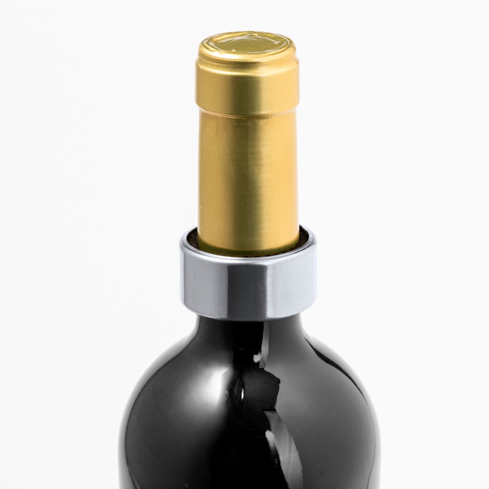Practical stainless steel drip stop. Adaptable to the neck of the bottle, with padded and velvet lined interior, to catch the excess drips when pouring. Stainless steel exterior that makes it durable. Presented in an individual kraft design box.