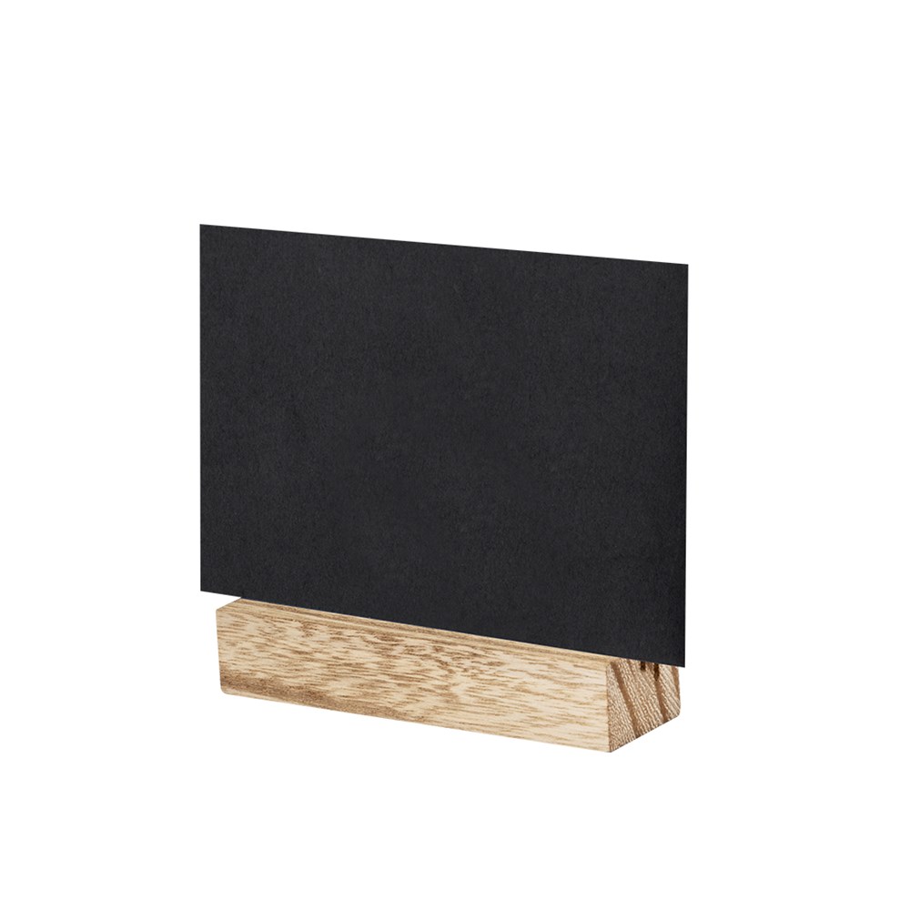 Display stand manufactured in resistant wood. Including a practical board for writing at both sides on it and comes presented in an individual, kraft design box.