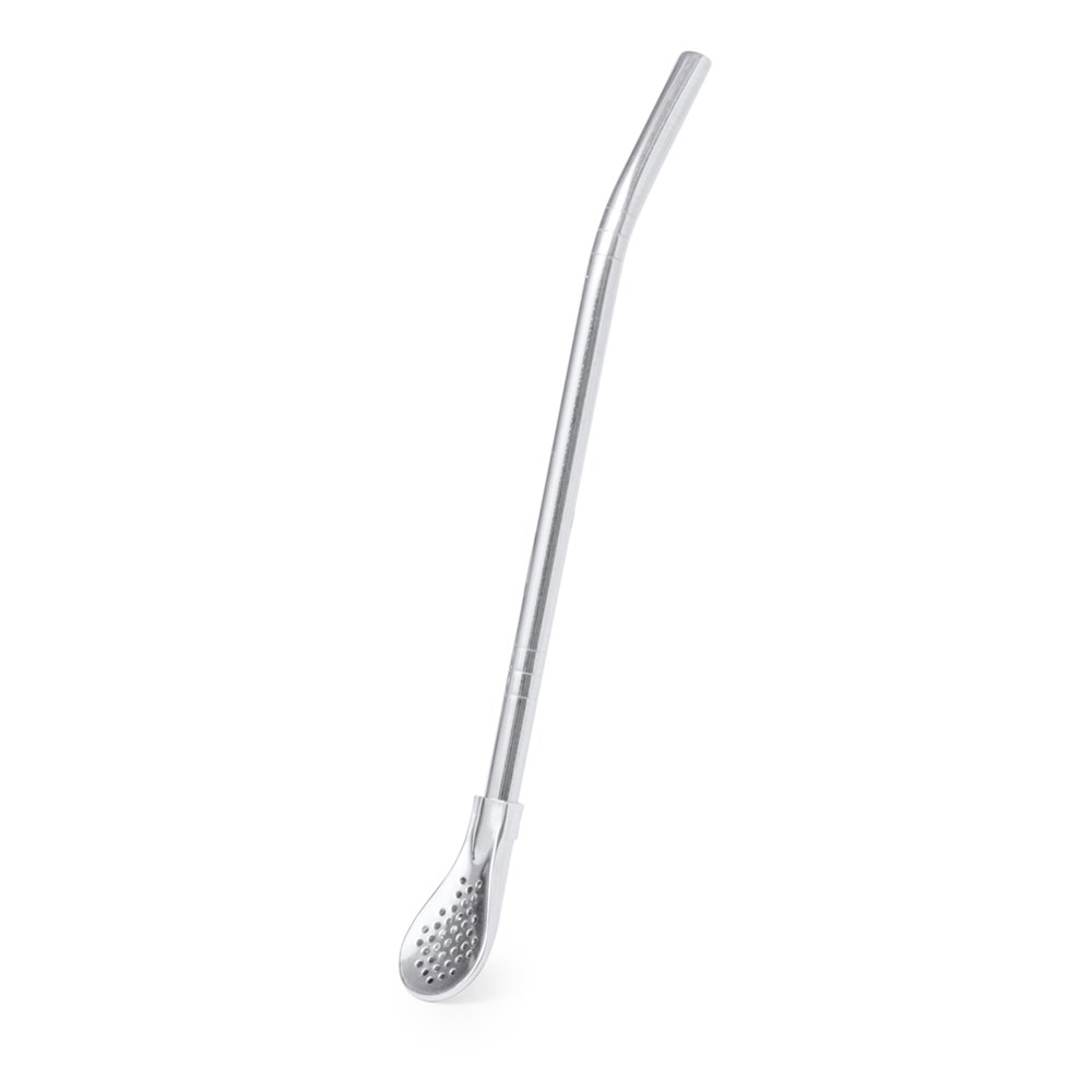 Useful stainless steel stirrer with straw. With its elegant and functional design, this accessory is essential for hot or cold drinks. Integrated straw for easy drinking and a practical spoon with filter at one end. Presented in an individual bag.