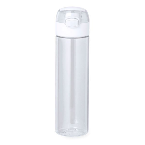 Bottle made of Tritan with a capacity of 650 ml. Ingenious spring-loaded lid, easy to open by pressing the front button, with safety lock. Optimal sealing of the screw cap and handle for convenient carrying. Available in a wide range of colours and presented in an individual kraft design box.