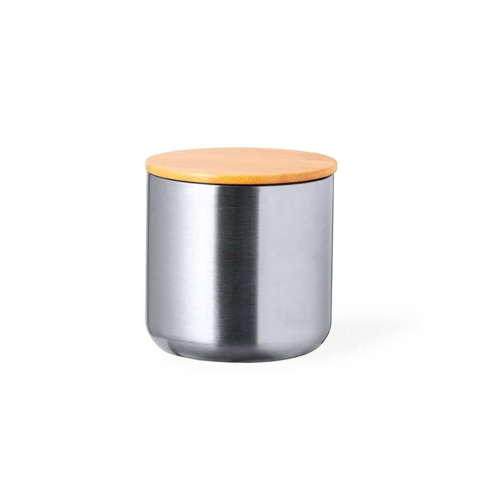 Practical set of thermos flask and tumblers, all made in stainless steel. Including 500 ml capacity stainless steel thermos flask with bamboo detail on top and handle. In addition, it contains 2 tumblers of 300 ml capacity each, made in stainless steel, with lids in bamboo, and push-on closure. Presented in a kraft design, die-cut box.