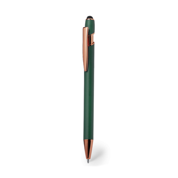 Excellent Aluminium ball pen pointer with push-button mechanism. Durable matt-finished Aluminium barrel with decorative elements in elegant copper finish, with barrel in a wide range of distinctive colours. Metal clip and black pointer at the top. In blue ink.