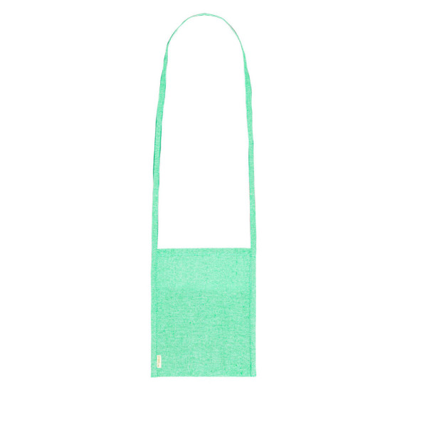 Practical multi purpose bag made of Recycled cotton. Versatile, with long handle and pocket to carry cups, glasses or any object comfortably. Available in different colours and made of soft Recycled cotton with distinctive label.