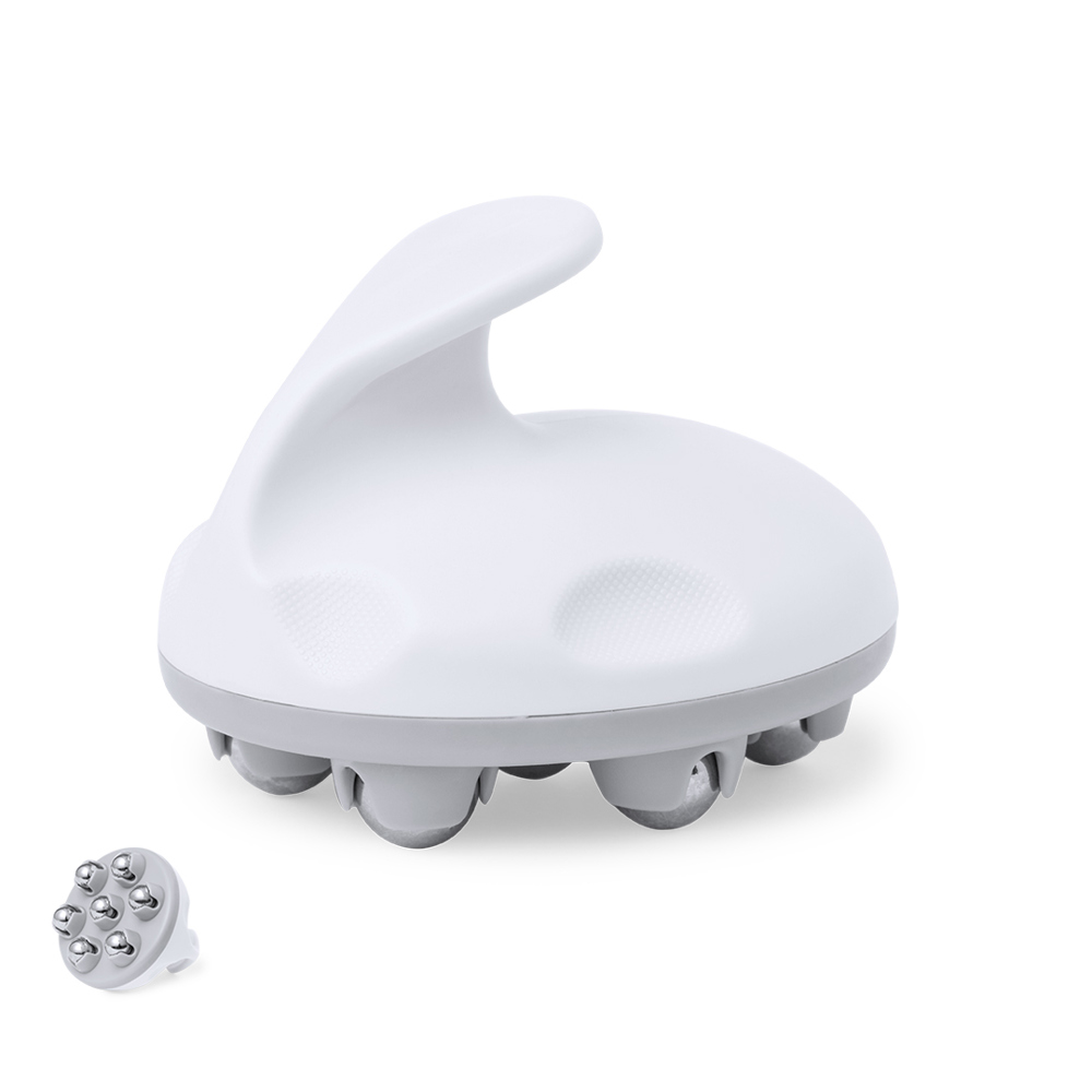Massager made of durable ABS with metal balls. Designed to provide relief and well-being. Its ergonomic handle ensures comfortable handling, while its cold effect metallic spheres helps absorbing lotions, relaxing the tired skin. Presented in an individual kraft design box.