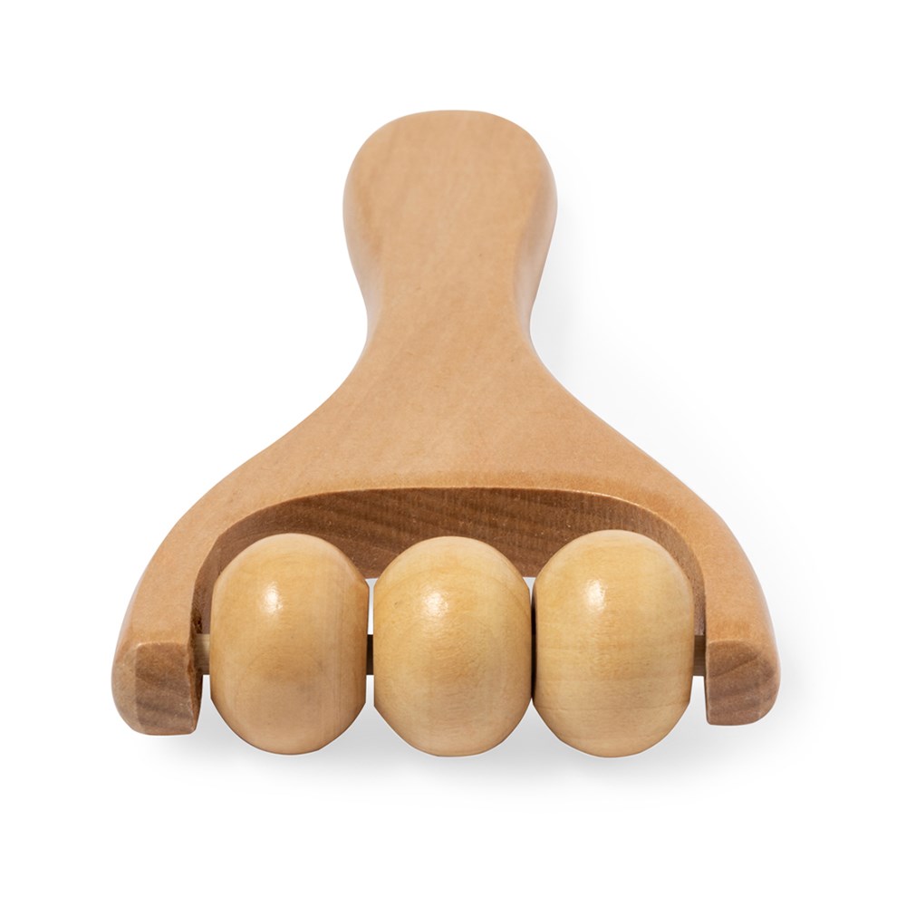 Massager made of natural wood. Designed to provide relief and well-being. Its ergonomic handle ensures comfortable handling, while its three wooden rollers are efficient and provide a revitalising massage, releasing muscle tension. Individually packaged in a kraft design box.