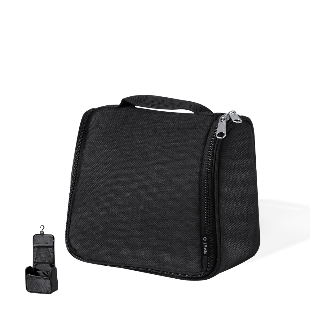 Beauty bag made of RPET, to store personal hygiene items, with practical hook to hold it... more