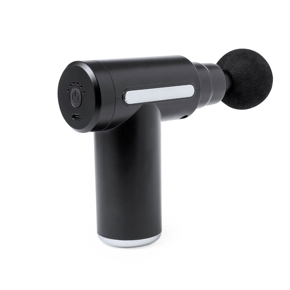 Electric massager. Helps to relax muscles, relieve the effects of training, release tension and revitalise the body. With two intensity settings and 4 heads for use on different areas of the body. Long lasting 1200 mAh rechargeable battery - USB charging cable included. Instructions manualavailable in English and Spanish.