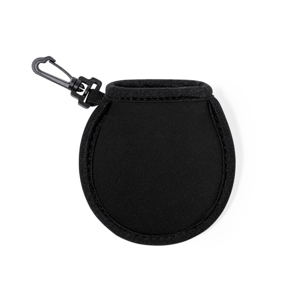 Cleaning bag for golf balls, made in soft shell. This practical accessory has a cloth inside for convenient cleaning of golf balls. In addition, it includes a swivel carabiner for easy attachment.