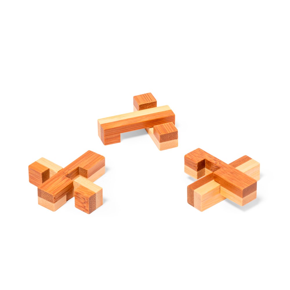 6-piece skill game made of soft bamboo. A fun puzzle perfect for entertainment: the pieces are assembled in a unique combination that will reveal the target figure. Presented individually in a kraft design box.Materials such as bamboo promote the use of natural raw materials, thus reducing pollutant emissions. It comes from a highly resistant and versatile plant, with rapid growth and regeneration, making it an excellent alternative to the use of traditional wood.