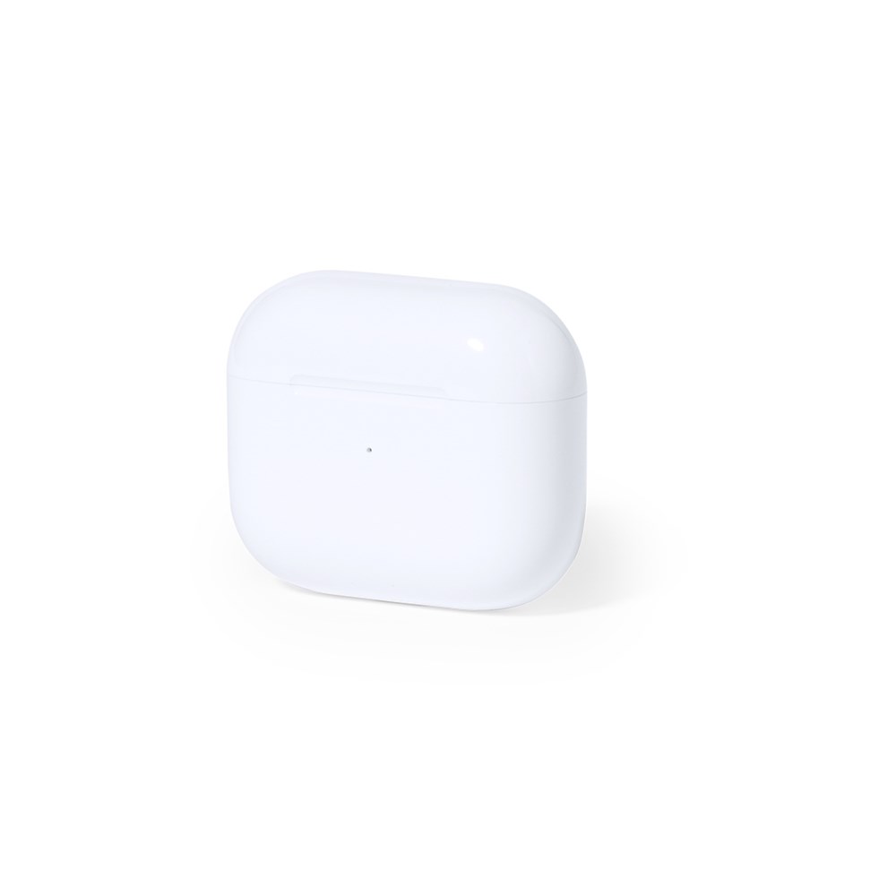 Earphones with Bluetooth® 5.3 connection and hands-free function. Ergonomically designed, including touch control button integrated in the earpiece, with matching charging base. Built-in 300 mAh battery and presented in an individual kraft design box. Instruction manual in English and Spanish.