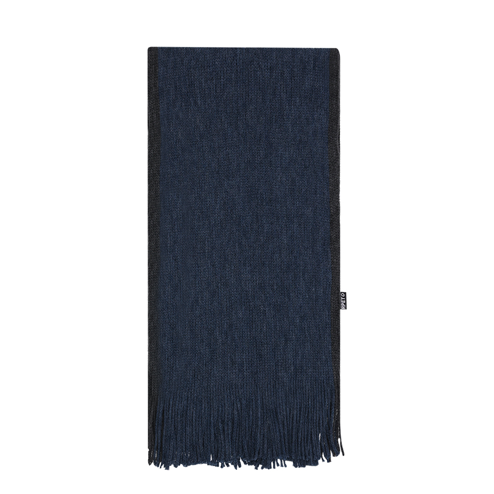 Soft scarf made of warm RPET polyester. Made in stylish colours, with contrasting edges and fringed finish. With RPET label and presented in an elegant black box with lid. RPET material is made from recycled plastic, thus promoting the reuse of plastic waste and helping the sustainability of the planet.