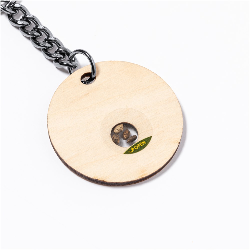 Keyring in soft and elegant beech wood. Including capsule with pine seeds. A respectful and... more