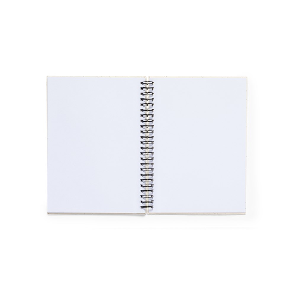 A5 ring binder notebook with hard covers, made in durable recycled cardboard. Inside with 80 white sheets 100% recycled. Presented in an individual recycled bag.