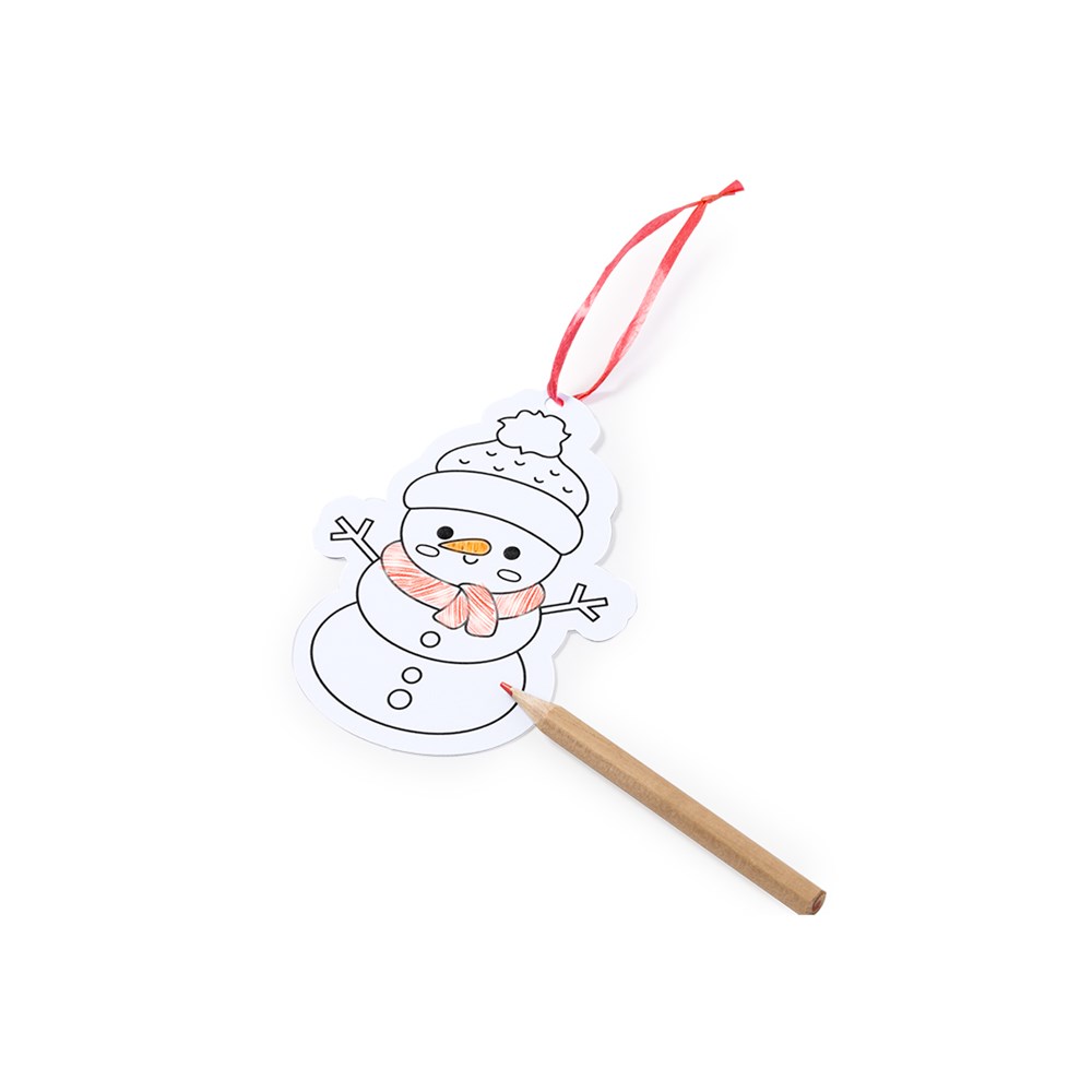 Set of ornaments with 6 original Christmas designs for colouring and decorating the Christmas tree. Includes 6 wooden pencils in different colours. Made of cardboard and presented in a recycled bag.