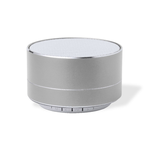 Compact speaker with Bluetooth® connection. Made of recycled aluminium, a material with almost infinite recycling possibilities, keeping its original properties and consuming less energy in this process. 3W power and 450 mAh battery. Bluetooth® 5.0 connection, with hands-free function and FM radio. Slot for micro SD cards, with ambient light at the base. Available in a wide range of colours and presented in an individual kraft design box, with instruction manual in English and Spanish.