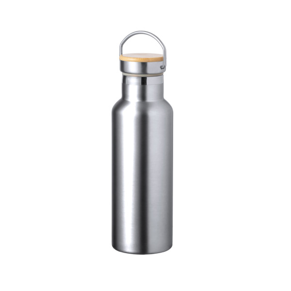 500 ml capacity thermal bottle, made in double wall, stainless steel. Including an original stainless steel screw cap with bamboo detail and integrated handle. Available in a wide range of colours, and presented in an individual box with kraft design.
