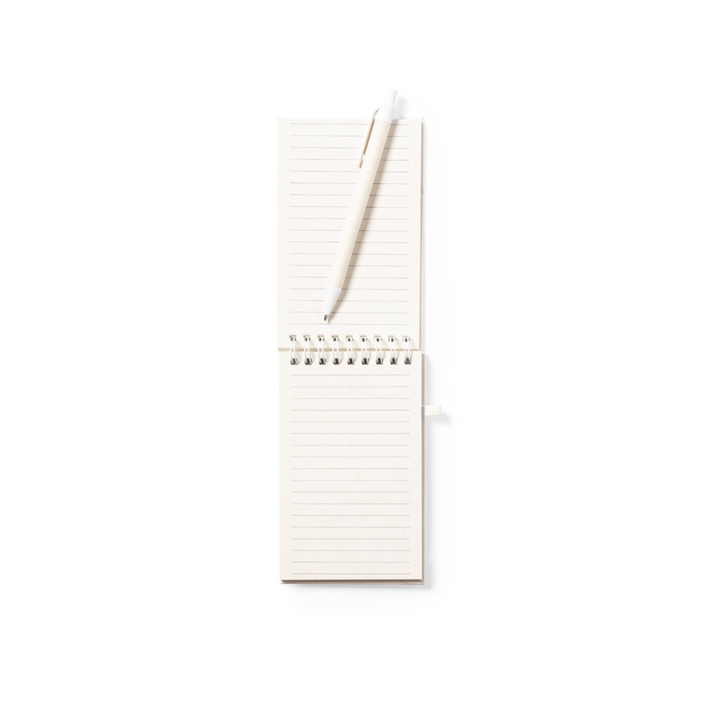 Nature line notebook convertible into a smartphone holder and made from recycled milk cartons. Hard cover with bamboo detail on the front cover and matching elastic band, including pen holder. Inside with 80 sheets of single-stripe layout and the distinctive of recycled milk cartons on back cover.Including ball pen made from recycled milk cartons with white fittings, push-button mechanism and blue ink. With the distinctive of recycled milk cartons on the top of the ball pen.Milk cartons are mostly made of cardboard and aluminum. During the recycling process, the different packaging materials are separated for reuse and re-purposing, thus contributing to the infinite path of the circular economy. This material is well known for its high recyclability, as well as for its lightweight and resistance.