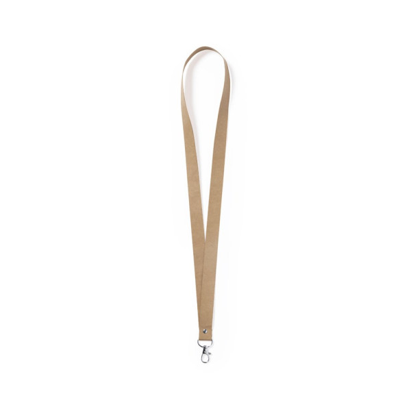Nature line lanyard made of resistant recycled cardboard. With metal swivel carabiner.