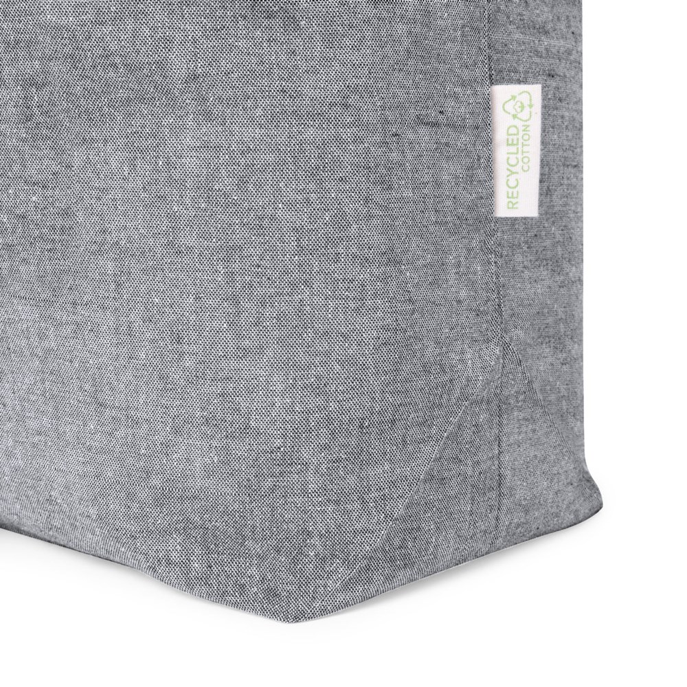 Nature line bag, made of 140g/m2 recycled cotton. Stitched finish and with long reinforced handles (70 x 2,5cm). Gusset on base and available in natural and black colours, with recycled cotton label on the outside. Resistance up to 6 kg in weight.GRS (Global Recycled Standard) certification available, guaranteeing the recycled origin of the material used to manufacture the product.
