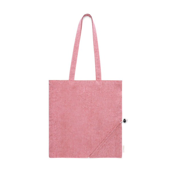 Nature line folding bag, made of 120g/m2 recycled cotton. Stitched finish and long reinforced handles (70 x 2,5cm). Small folding size by drawstring with adjustment accessory. Available in a wide range of colours, with recycled cotton label on the outside label. Resistance up to 6 kg in weight. GRS (Global Recycled Standard) certification available, guaranteeing the recycled origin of the material used to manufacture the product.