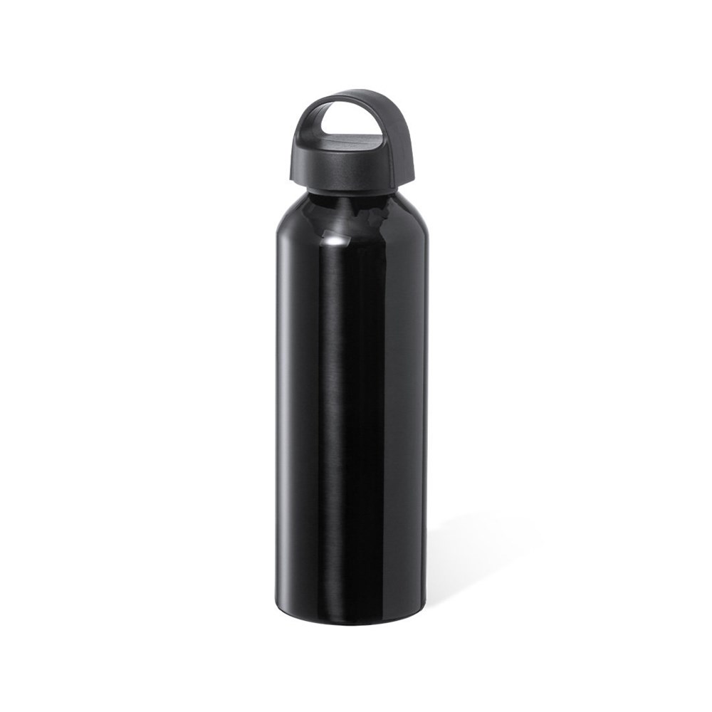 800 ml capacity bottle, made of aluminium with glossy finish. Black screw cap with integrated handle, BPA free. Available in a wide range of colours and presented in an individual box with kraft design.Instruction manual available in Spanish and English.