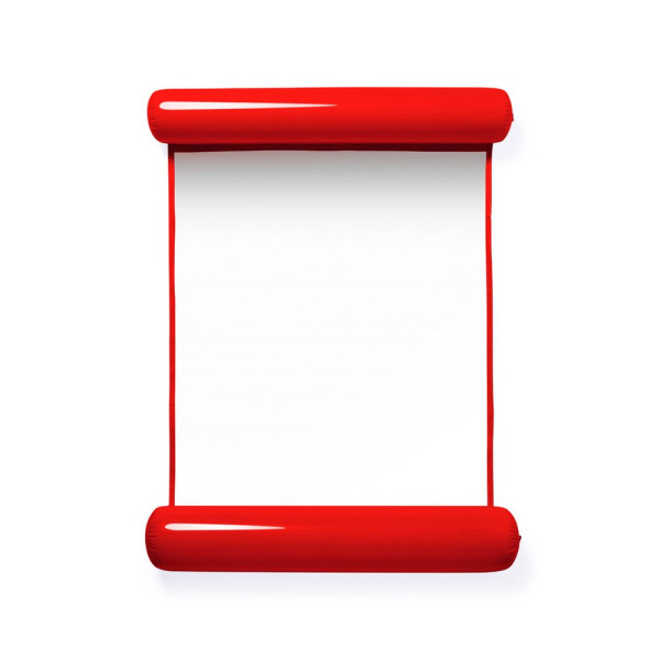 Innovative, inflatable mattress with sides in resistant PVC. Roll-up, with central mesh in white polyester, size 80x70 cm. Special folding for easy branding, and available in a wide range of colours.