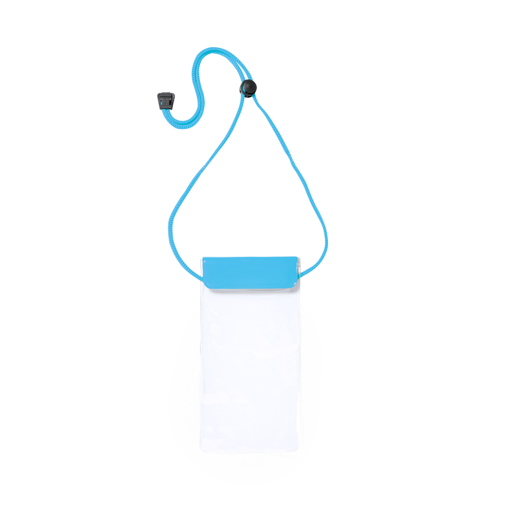 Handy, waterproof PVC case with touch function and double security system for watertightness. Specially designed for devices with 6.5" screen. With matching drawstring, adjustment accessory and large branding surface.
