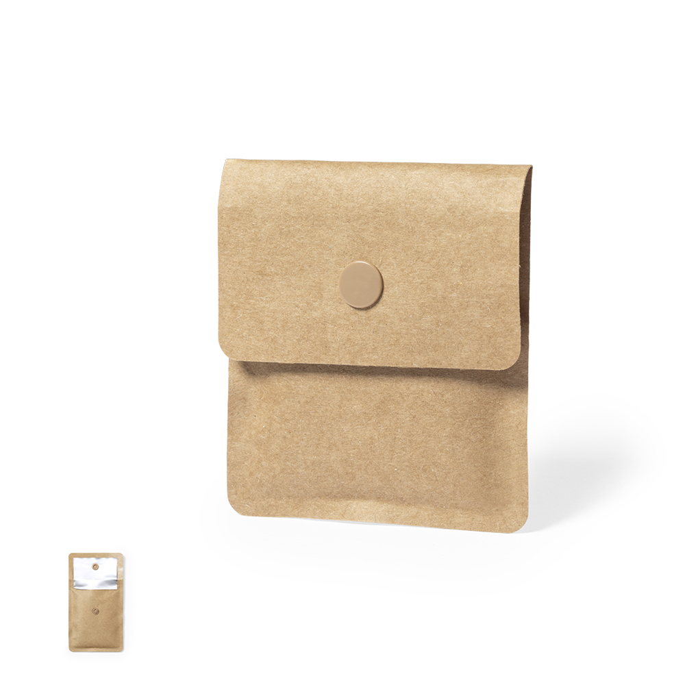 Nature line pocket ashtray, with laminated recycled paper outside and fireproof aluminium inside. Flap with matching clasp closure.