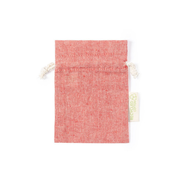 Pouch in nature line and size 10x14 cm. With drawstring closure and made of recycled cotton GRS 120g/m2. Easy branding and specially designed for small objects, with recycled cotton label on the outside. GRS (Global Recycled Standard) certification available, guaranteeing the recycled origin of the material used to manufacture the product. Available in a wide range of colors.