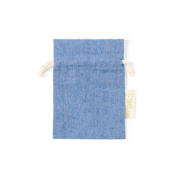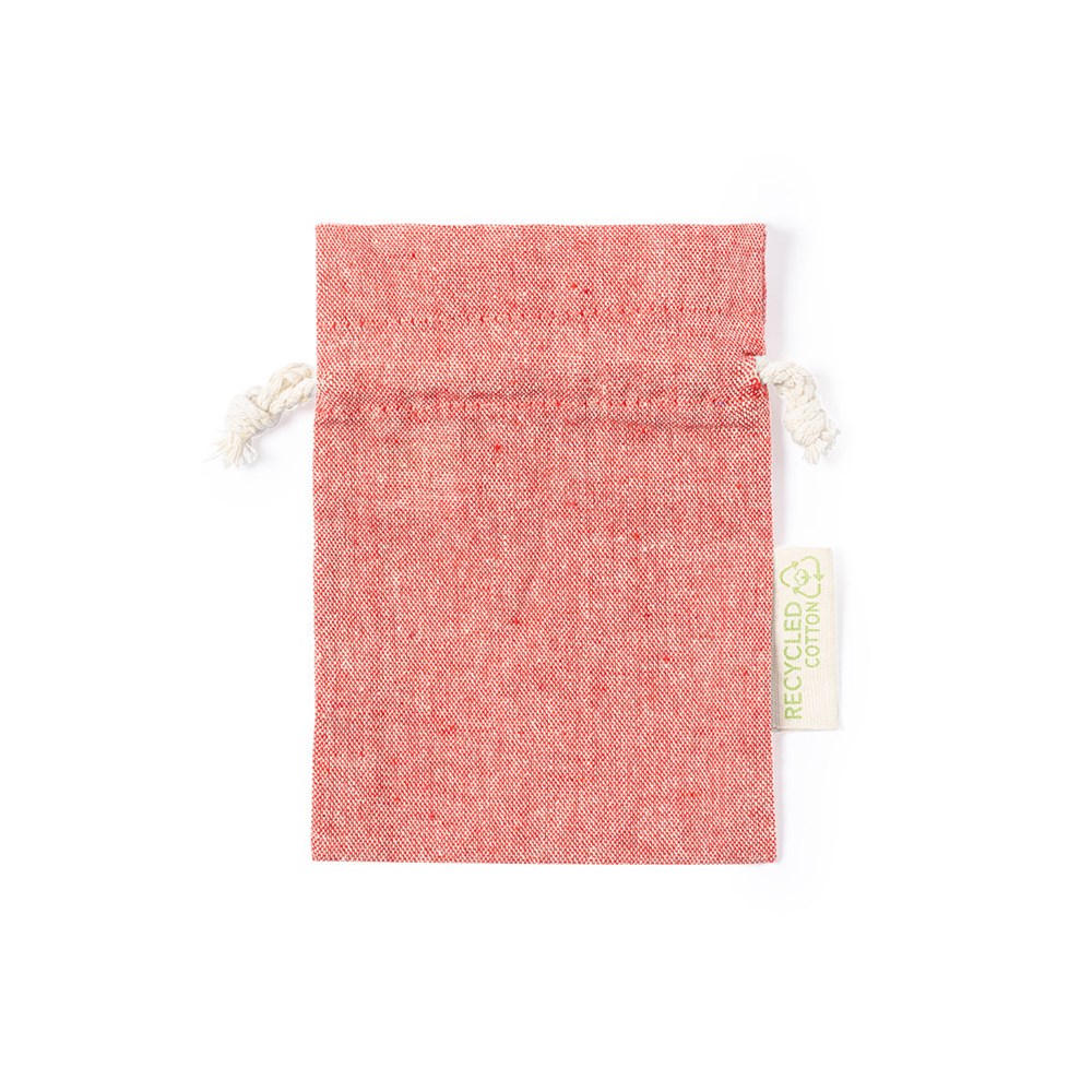 Pouch in nature line and size 10x14 cm. With drawstring closure and made of recycled cotton GRS 120g/m2. Easy branding and specially designed for small objects, with recycled cotton label on the outside. GRS (Global Recycled Standard) certification available, guaranteeing the recycled origin of the material used to manufacture the product. Available in a wide range of colors.