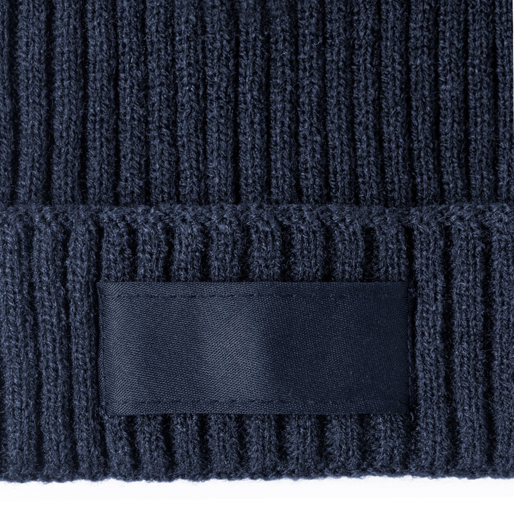 Soft and warm ribbed knitted hat, made in elastic acrylic material. Including matching label for branding, and available in a wide range of colors.