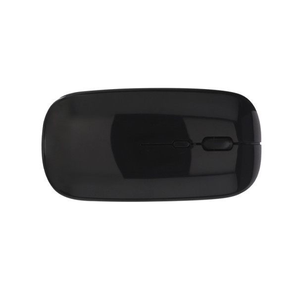 Wireless optical mouse with ergonomic design. Housing made of recycled ABS (RABS) and with RCS certification, which guarantees its recycled origin. USB rechargeable (cable included) and presented in individual eco-design box in kraft cardboard.