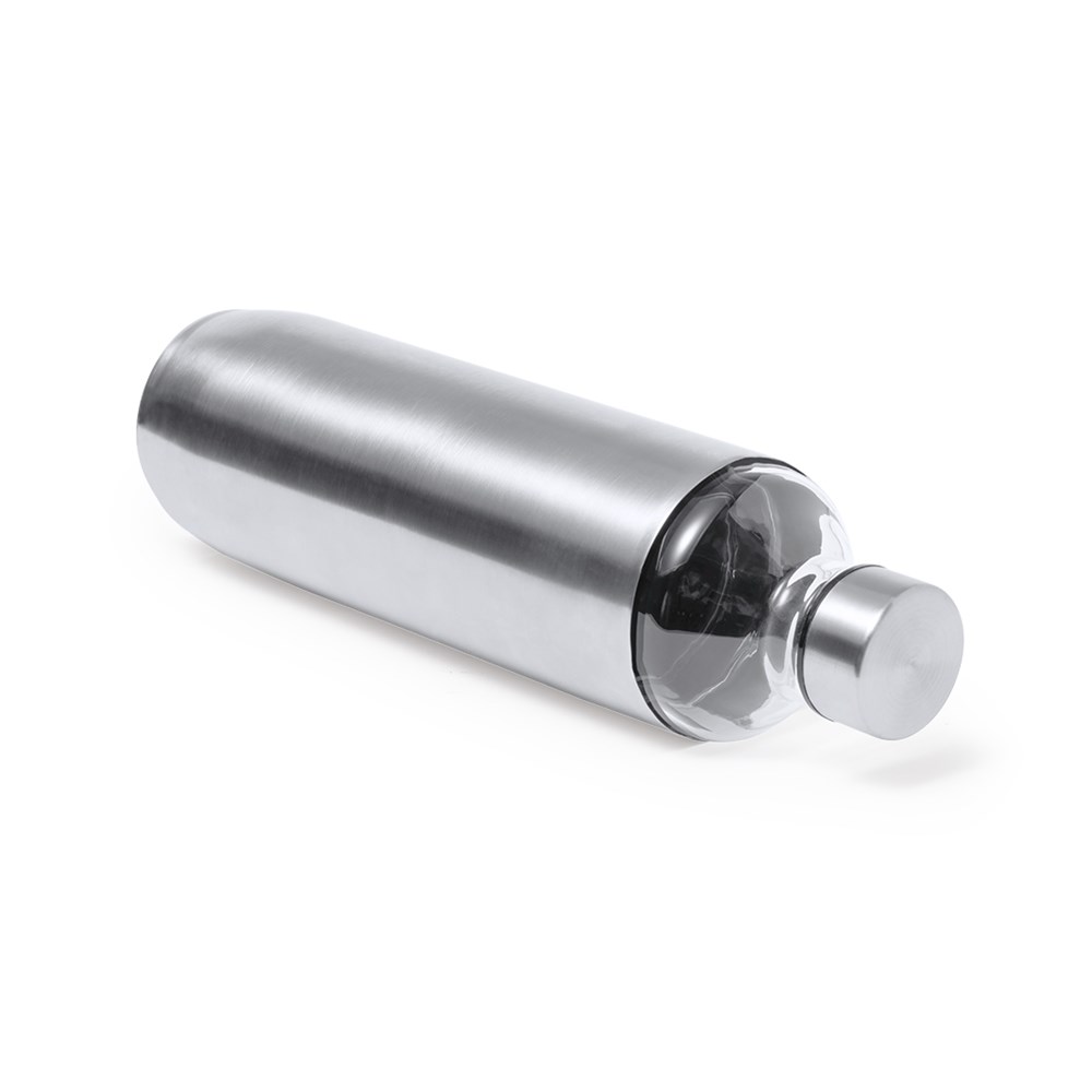 High quality design bottle, 850 ml capacity. Made of borosilicate glass, which offers exceptional resistance, aesthetic and durability, extending its useful life and allowing it to be reused countless times. Stainless steel cap and body cover. Presented in an attractive design box.