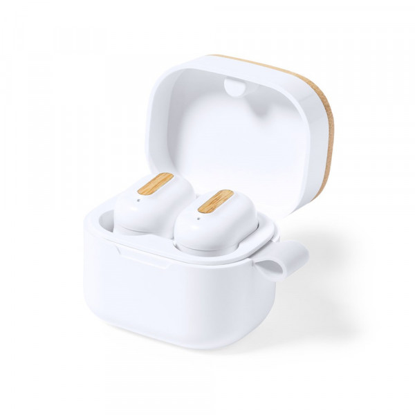 Wireless Headphones Limited Edition. A breakthrough design that combines design, functionality and sustainability. In elegant white finish in combination with natural bamboo details and presented in a white carrying case with a distinguished bamboo cover. Ergonomically designed, with integrated touch control button on the earpiece, matching charging base and LED charging indicator light. Bluetooth 5.0 connection. Hands-free function and rechargeable with USB C cable included. Instruction manual in English and Spanish included. From the perfect combination of exclusivity and design, come Limited Edition, a special collection of limited edition promotional ideas. A new concept, inspired by the fusion of premium products with the latest and most innovative trends and with a limited selection available, turn a gift into a unique and unforgettable experience. Exclusive Limited Edition presentation case, with a design protected by industrial property rights. Including card with description of Limited Edition in recycled cardboard.