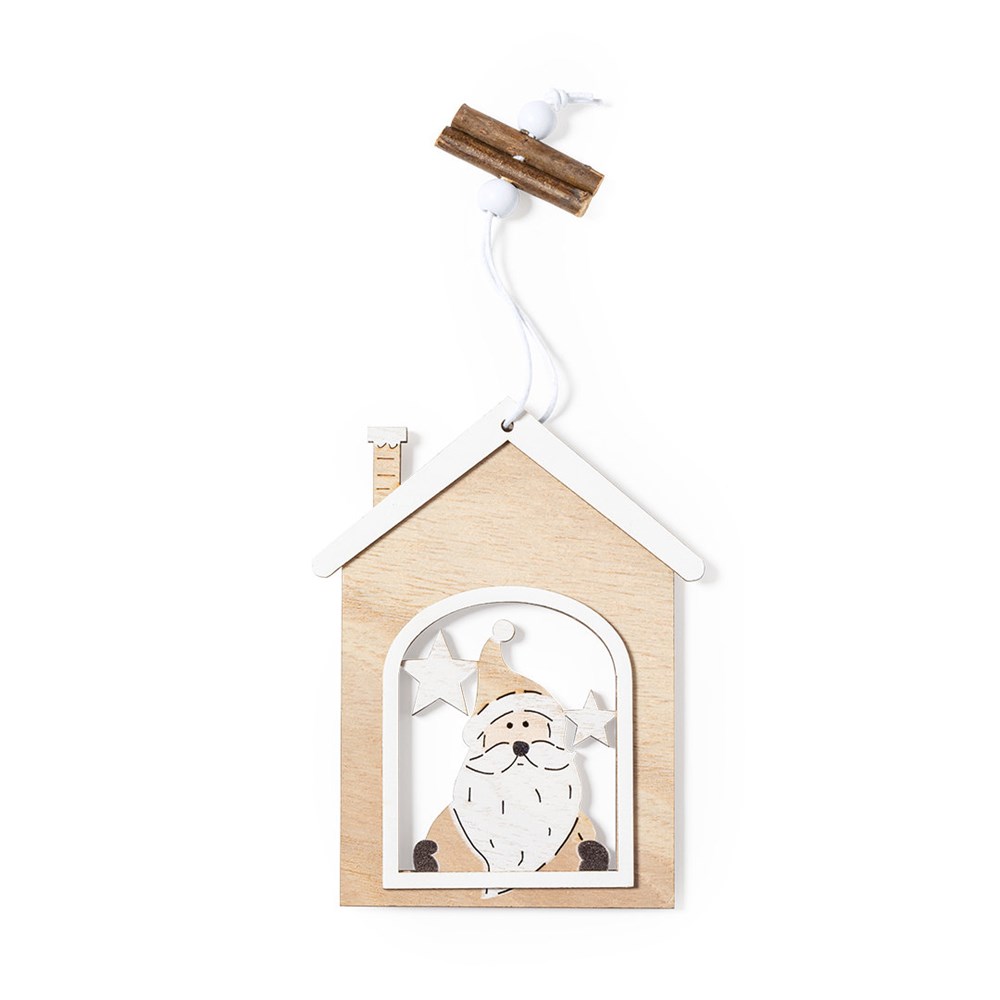 Elegant and modern Christmas decoration in natural wood. Includes hanging accessory and available in two designs: Santa Claus and Christmas motifs.